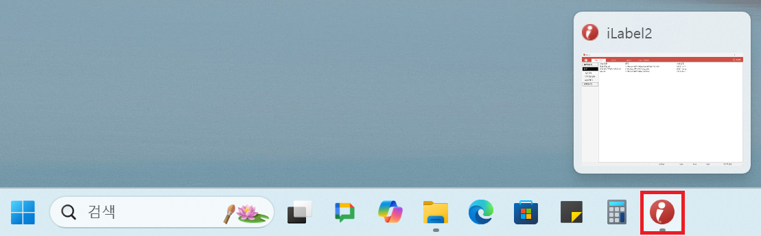 2. 바탕화면 아래 작업 표시줄에서 프로그램 아이콘 위에 마우스를 올립니다.